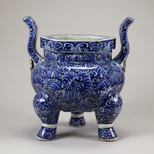 150 청화 수산복해문 삼족 향로 명대 선덕 | 64.5×60.5 cm