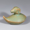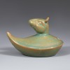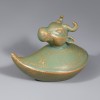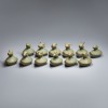 This is a set of twelve zodiac-shaped water droppers produced at the Ru kilns during the Northern Song dynasty. Each piece has a droplet-shaped body, topped with the head of one of the twelve zodiac animals. In China, figures of the twelve zodiac animals began to be made as burial objects for apotropaic (evil-averting) purposes from the Southern and Northern Dynasties period, and by the Song dynasty they were also produced in porcelain. These water droppers, with their neat, compact forms, depict the auspicious zodiac animals in a realistic manner that clearly conveys the characteristics of each creature.