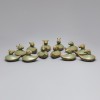 북송대 여요(汝窯)에서 제작된 십이지(十二支) 형상의 연적(硯滴) 열두 점입니다. 몸체는 물방울 형태이며, 상부는 각각 십이지 동물의 머리로 만들어졌습니다. 중국에서는 남북조 시대부터 벽사(辟邪) 용도로 십이지상을 만들어 부장(副葬)하기 시작하였고, 송대에는 자기(瓷器)로도 십이지상을 제작하였습니다. 이 연적들은 단정한 형태에 길상의 십이지를 사실적으로 묘사하여 각 동물의 특징이 잘 드러납니다.