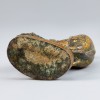 말과 원숭이를 묘사한 청동기 유물입니다. 고개를 숙이고 서있는 말의 등 위로 원숭이가 네 발로 올라타 있습니다. 생동감 있게 묘사된 원숭이의 표정과 자세, 세밀하게 표현된 말의 갈기와 원숭이의 털이 사실적으로 보입니다. 말의 몸통에는 네 글자의 명문과 나선 문양이 금박으로 화려하게 상감되었습니다.