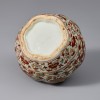 어깨에는 청화로 '大明萬曆年製(대명만력년제)'라는 관지가 시문되어 있어 제작 시기를 만력 연간으로 추정할 수 있습니다. 만력 연간에는 홍녹채(紅綠彩)나 오채 기법을 활용한 채색자기 제작이 발전하여, 이전 시기보다 안료의 발색이 더욱 진하고 선명해집니다. 이렇듯 관지와 시문 기법으로 보아 이 유물은 만력 연간 황실과 밀접한 관련이 있는 것으로 추정됩니다.