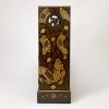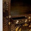 전면에는 여의주를 사이에 둔 용과 봉황이 자개와 대모, 금박 등으로 화려하게 시문되어 있습니다. 이러한 구상은 권위와 조화, 번영을 상징합니다. 상단 장의 측면과 하단 장의 나비 모양 장석에 ‘만(卍)’ 자 문양이 투각되어 있습니다. 이외에도 받침대부터 바탕까지 구름, 덩굴, 꽃 등의 문양들이 시문되어 길상 의미를 더합니다. 장인의 정교한 솜씨와 상징성이 어우러진 대표적인 궁중 목기입니다.