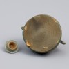 바닥면을 제외한 표면 전체에 녹청색이 감도는 유약이 시유되었으며, 빙렬이 관찰됩니다. 백색 내화토를 받쳐 구운 흔적이 남아 있어 소성 방식을 보여줍니다.
