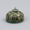 This is a small hemispherical ewer with a lid from the Goryeo period, presumed to have been used as a water dropper. Iron-brown decorated celadon began to be produced at kiln sites such as Jinsan-ri in Haenam and later at Gangjin, mainly in small vessel forms.