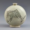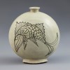 This piece was fully coated in white slip by the dipping (deombeong) method, then decorated with fish motifs painted in iron-brown pigment. The bold brushstrokes and large, vivid fish filling the surface showcase a free and expressive style.